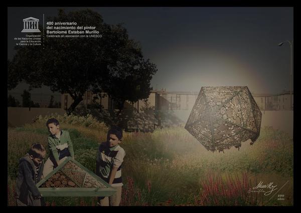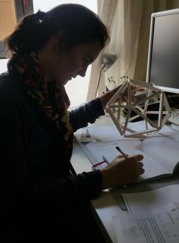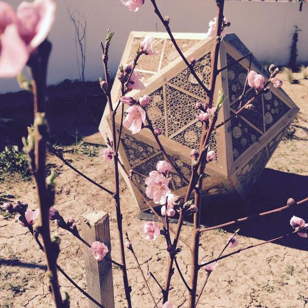 Una tarde ya finalizada la exposición de Luces de barrio en la casa Murillo y comenzado el 2018, Javier Real (nuestro carpintero), Tamara y yo volvimos a montar el hotel de insectos con forma de icosaedro en el huerto del colegio Andalucía en el Polígono Sur.